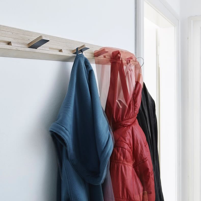 Die Kleiderschiene binó findet überall Platz: an der einzig freien Wand zwischen Küchentür und Bad, in einem langen, schmalen Korridor oder in einer großen Eingangshalle.