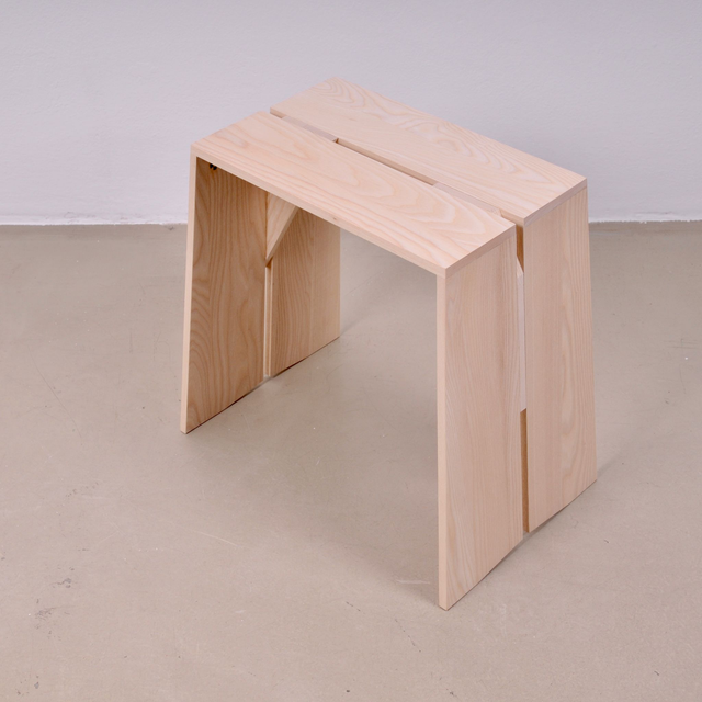 Der Hocker „hepp“ ist in der Ausführung „Koskisperrholz“ in den Farben weiss, weiss transparent, grau, blau, pink und gelb erhältlich oder in der Massivholzausführung aus Eschen- oder Kastanienholz.